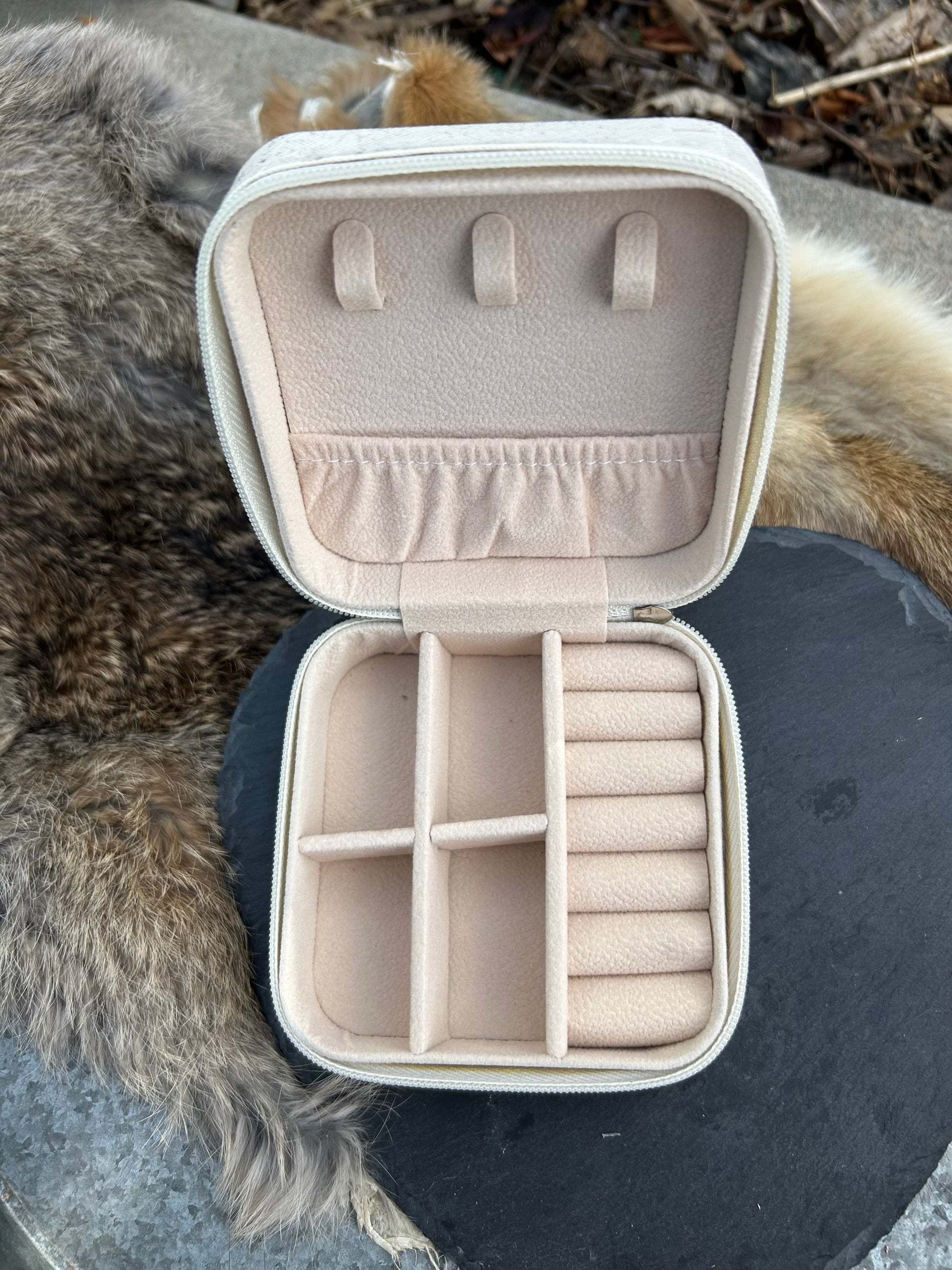 Keep your treasures safe on every adventure with the Desert Stargazer Travel Jewelry Box. Featuring a playful desert and alien design patch crafted from premium top-grain leather, this box is as durable as it is charming. Perfectly sized for on-the-go jewelry storage, it keeps your favorite pieces organized and ready for wherever your journey takes you.